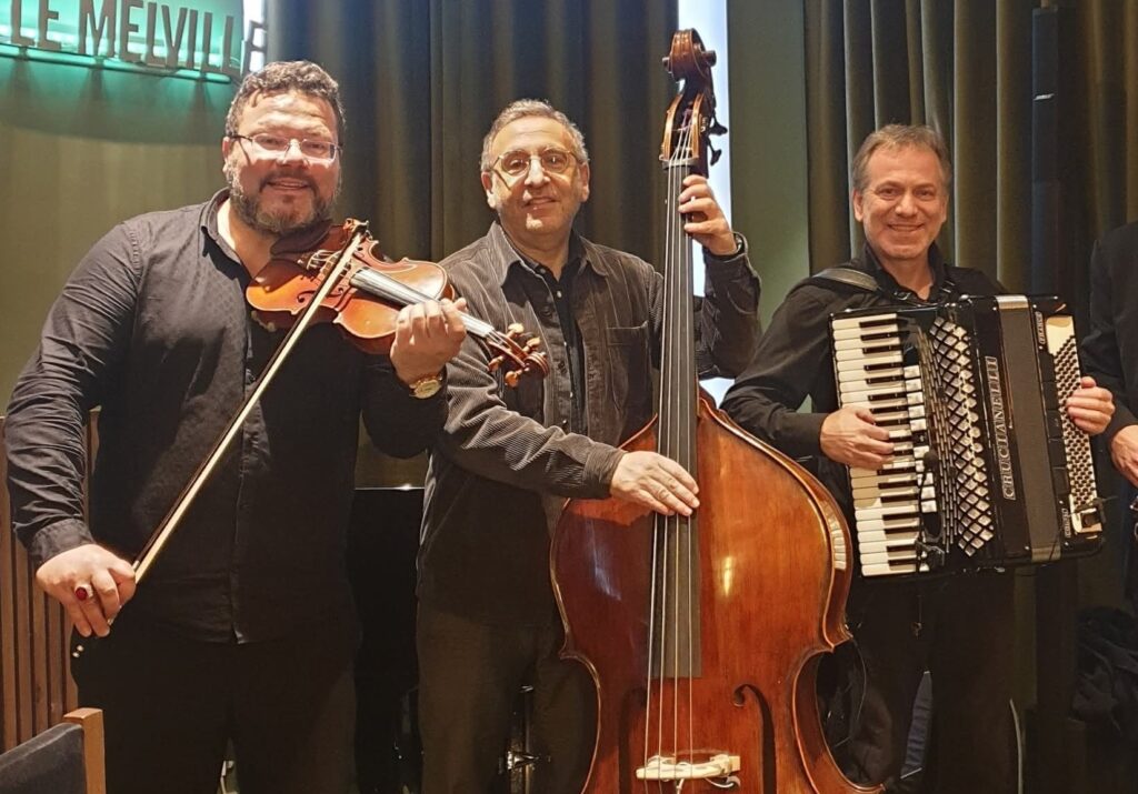 Gashka, c’est la rencontre de différentes cultures intimement liées, entre airs et mélodies yiddish, tzigane, klezmer ; un trio envoûtant et un mariage heureux entre les racines de chacun. Malgré les épreuves, cette belle bande de canailles nous invite à la danse et à l’espérance, en privilégiant en toutes circonstances la force de la vie par la musique.